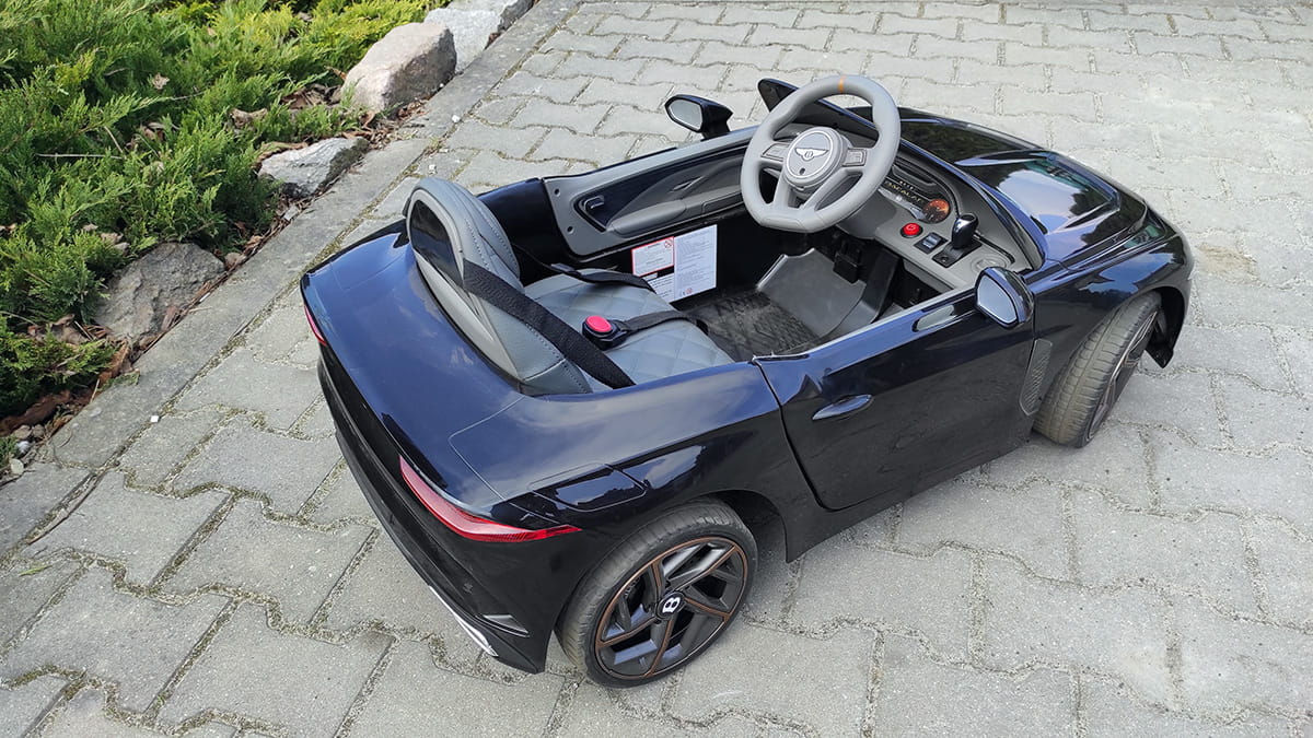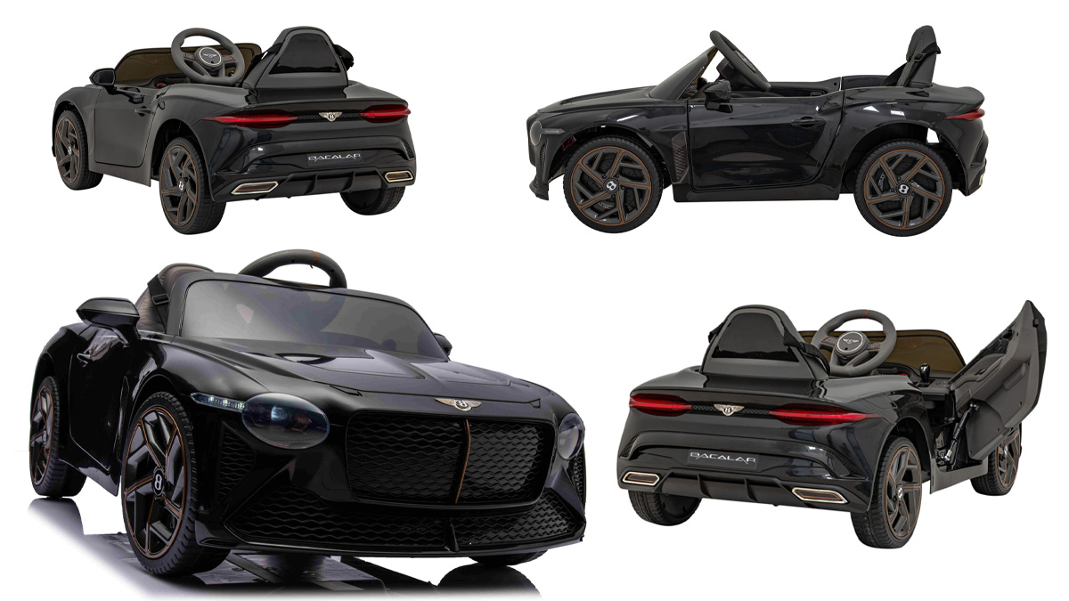 Zaprojektowany z myślą o małych miłośnikach motoryzacji, Bentley Bacalar wyróżnia się pięknym czarnym kolorem i szczegółowym wykończeniem. Miękkie, eko-skórzane siedzenie oraz łatwo otwierane drzwi zapewniają wygodę i bezpieczeństwo, a solidna konstrukcja gwarantuje trwałość na lata.