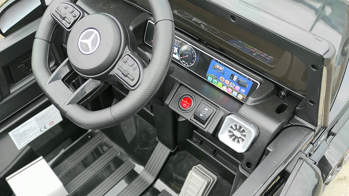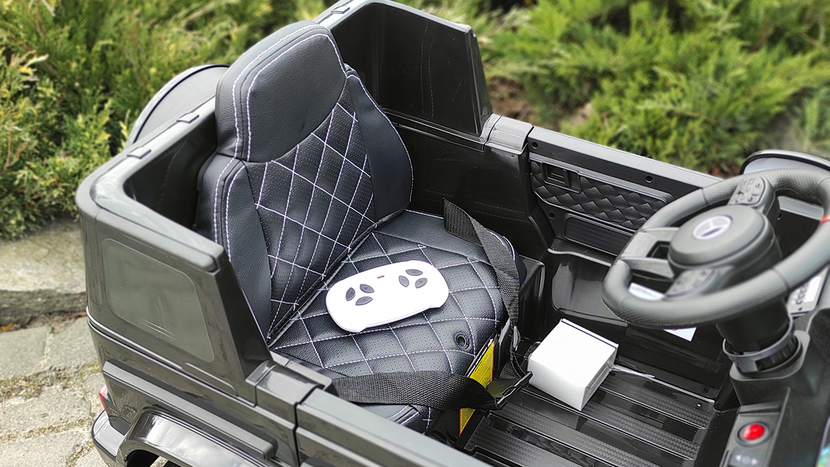 Zainspirowany legendarnym modelem Mercedes AMG G63, nasz pojazd nie tylko imponuje wyglądem, ale także zapewnia niezrównany komfort jazdy. Siedzenie wyściełane ekoskórą z pasami bezpieczeństwa gwarantuje wygodę nawet podczas dłuższych eskapad.