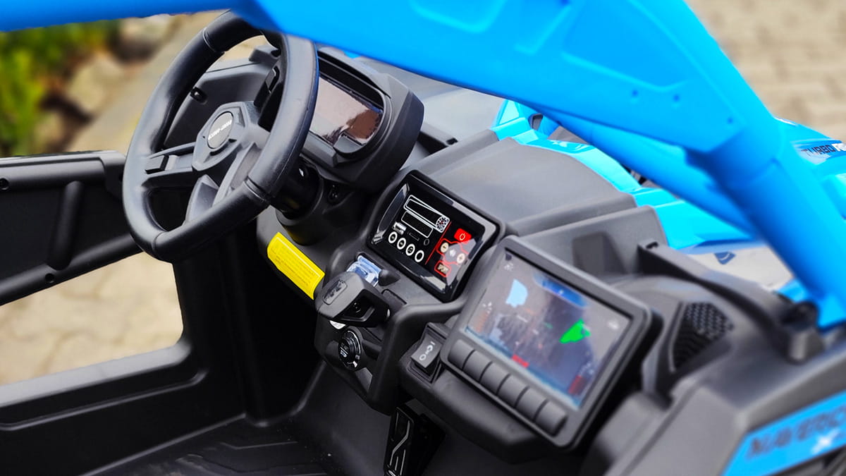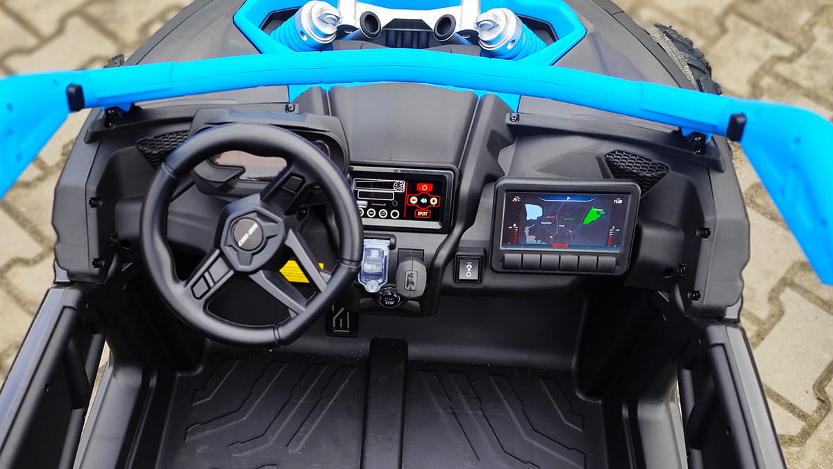 Dynamiczna, agresywna linia nadwozia oraz niebieski kolor podkreślają charakter pojazdu. Maverick Turbo RR Ultimate wygląda jak profesjonalne buggy i dokładnie takie wrażenia oferuje podczas jazdy.