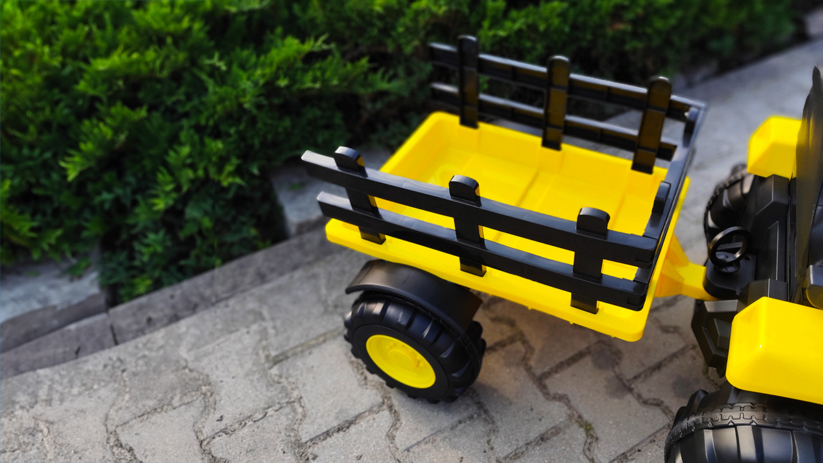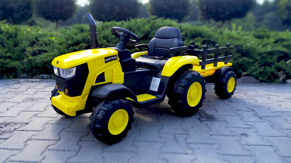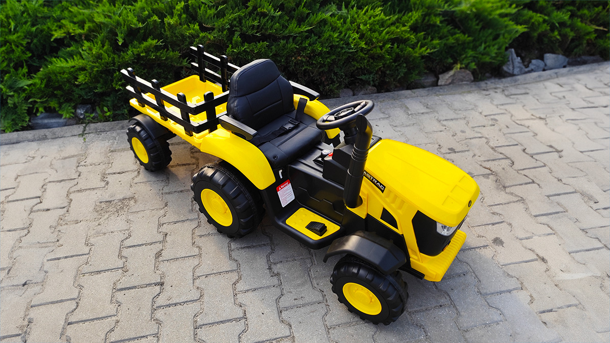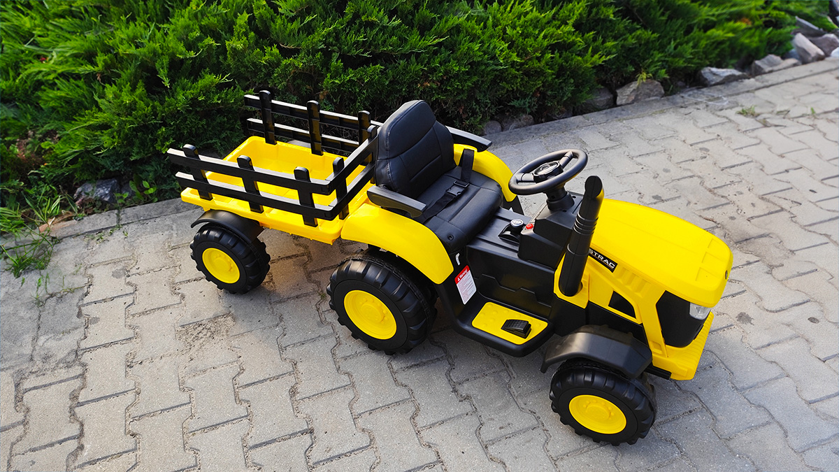 Dwa niezależne silniki o mocy 45 W (typ STRONG2, 12 V) napędzają traktor, co przekłada się na dynamiczny, a zarazem bezpieczny ruch, nawet pod obciążeniem. Pojazd posiada pedał gazu oraz dwa biegi – wolny i szybki – oraz kierunek jazdy do przodu i do tyłu. Maksymalne obciążenie pojazdu wynosi 30 kg, a przyczepy – 5 kg