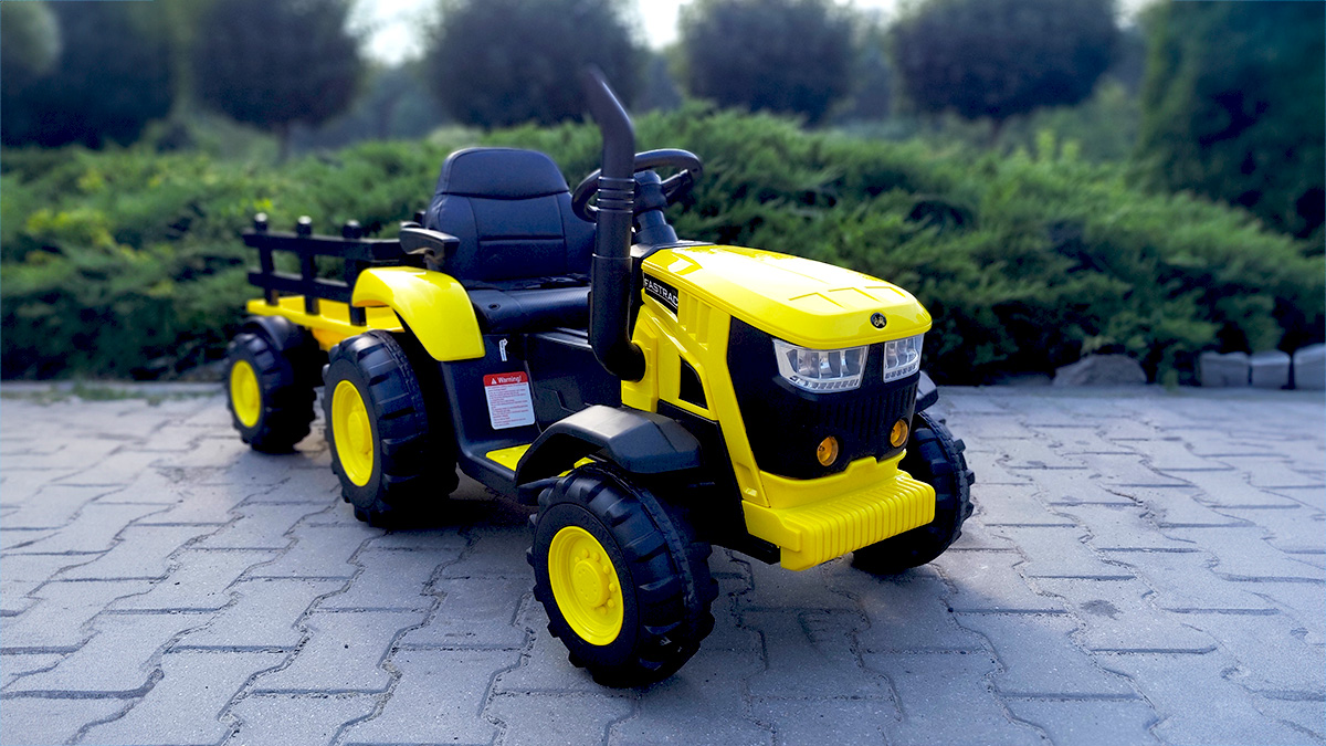 Mega Traktor HL‑3388 na Akumulator z Przyczepą Żółty - 2 Silniki, Miękkie Siedzenie, Pilot 2.4 GHz