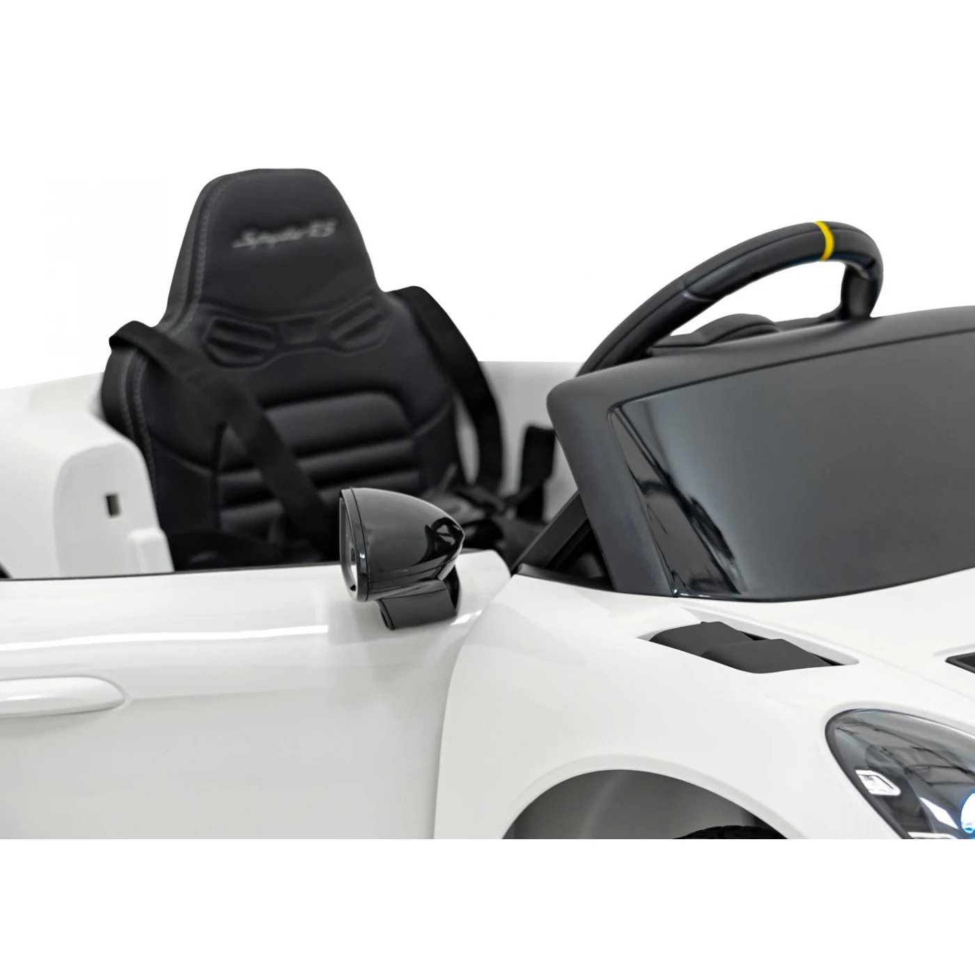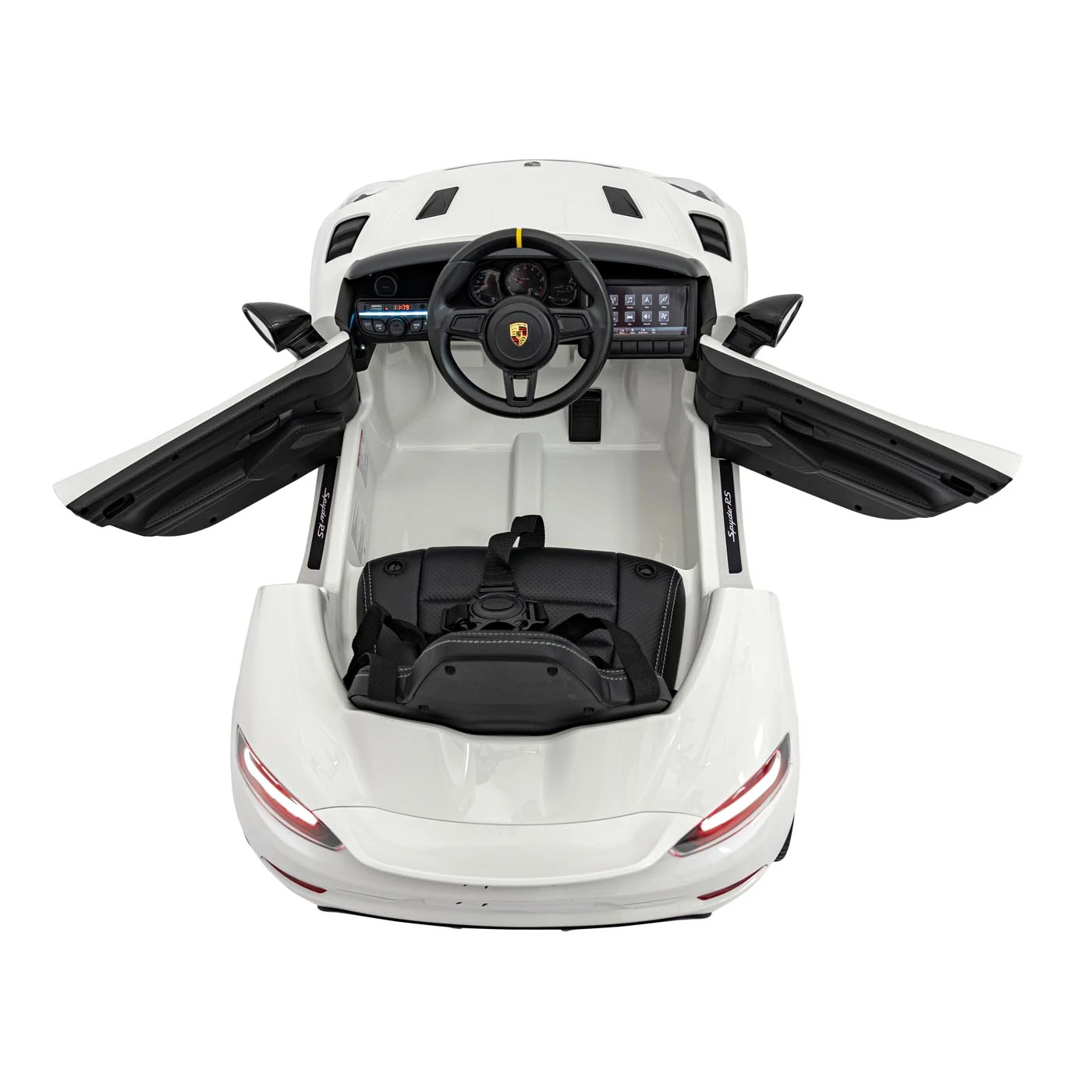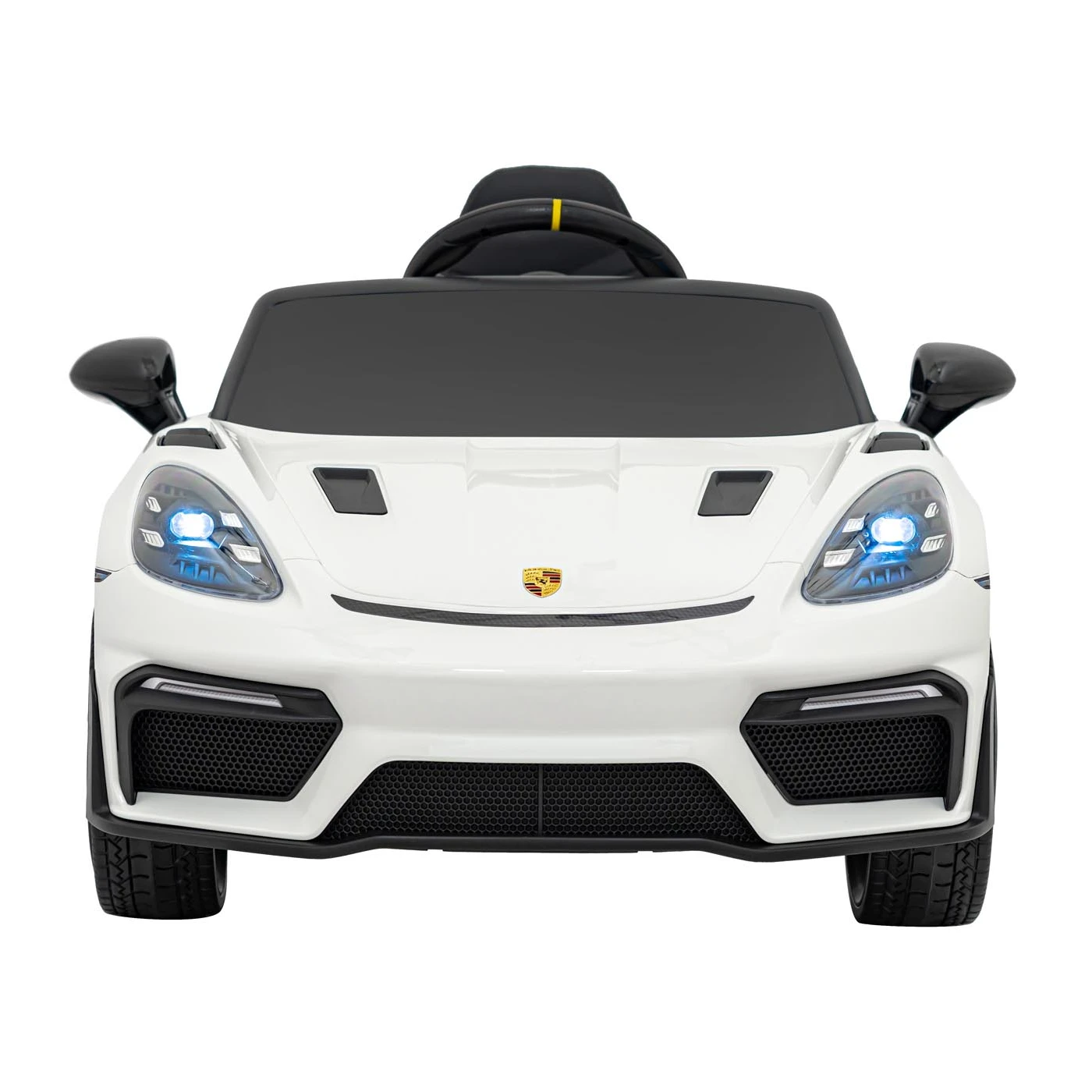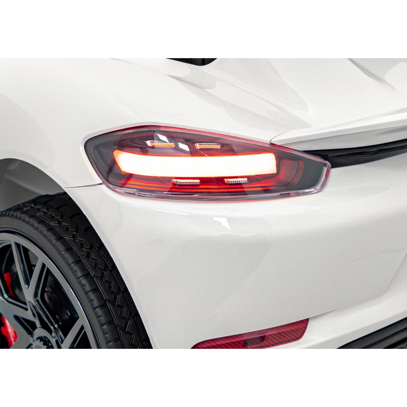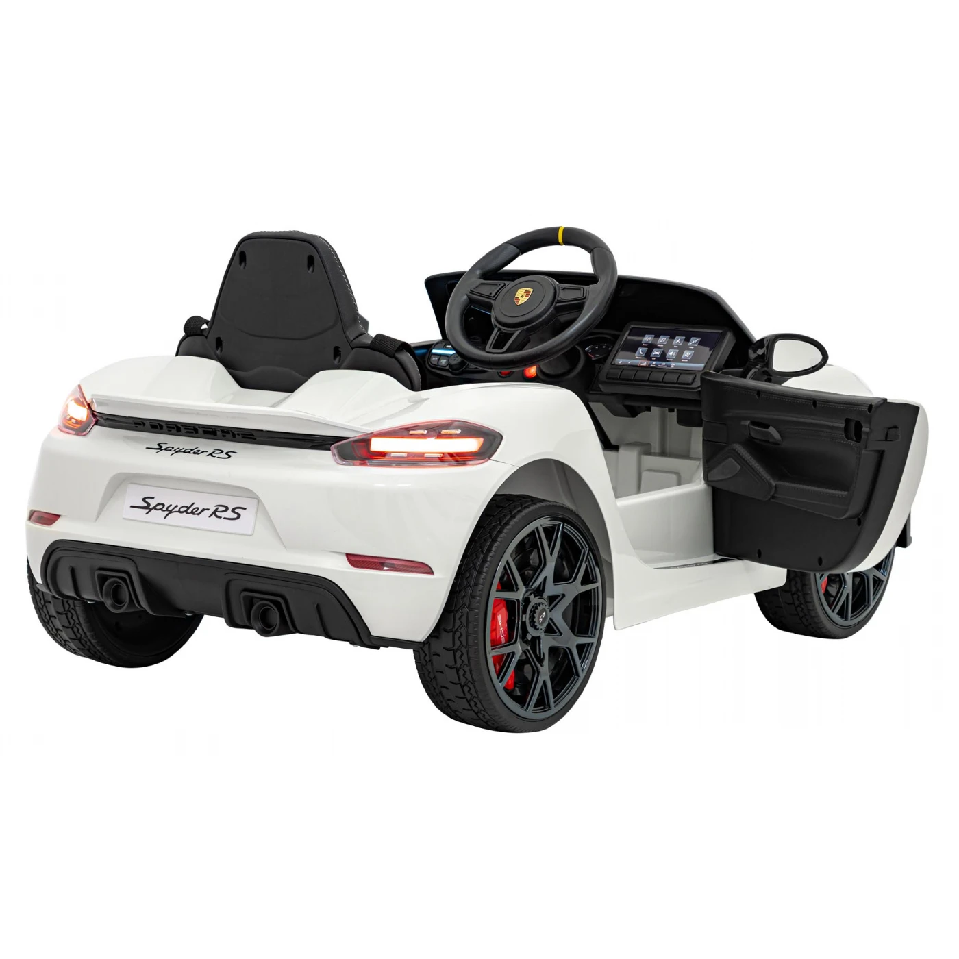Wszystkie elementy Porsche 718 zostały zaprojektowane z dbałością o szczegóły. Wnętrze odzwierciedla stylistykę prawdziwych sportowych samochodów – estetyczne wykończenie, wygodne siedzenie i funkcjonalny kokpit sprawiają, że dziecko poczuje się jak prawdziwy kierowca. Włącznik z realistycznym odgłosem silnika dodaje autentyczności, przenosząc malucha w świat wyścigowych emocji.